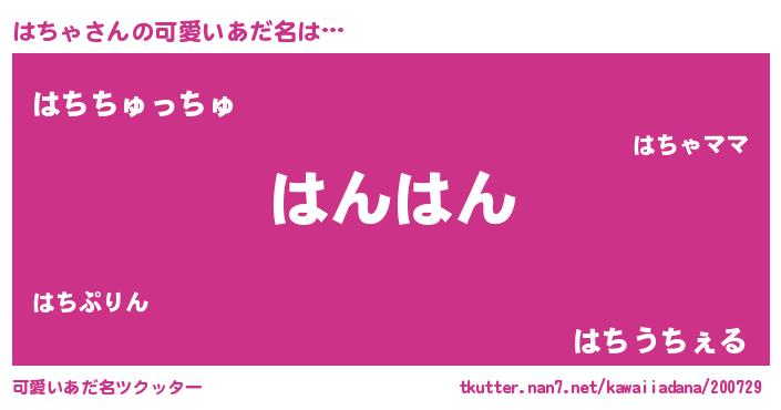 | 意味不明あだ名 | 『ペロリンはちゃ』『自称はちゃ』 |