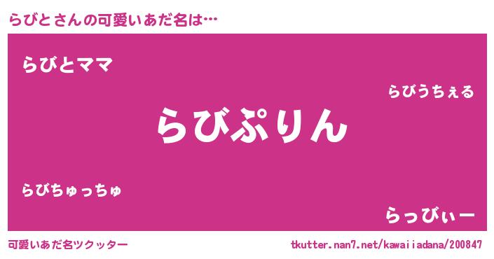 | 恥ずかしいあだ名 | 『らびちん』『ラビリンリン』 |