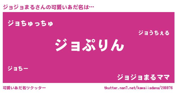 | 男性向けラノベタイトル風あだ名 | 『ジョジョまる~年齢イコール彼女いない歴の魔法使い~』 |