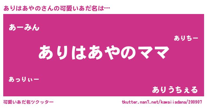 | 意味不明あだ名 | 『永久保存ありはあやの』 |