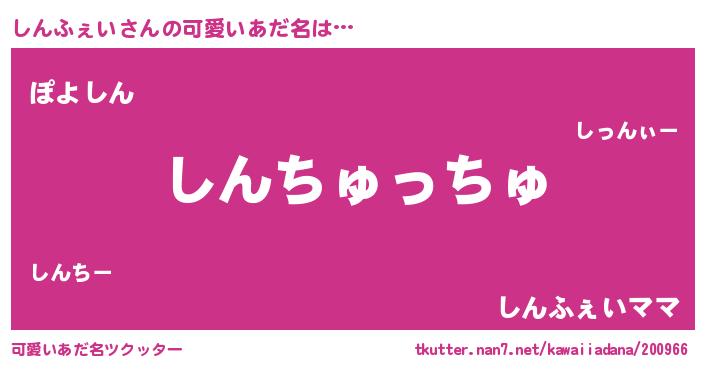 | ヘコむあだ名 | 『しんふぇい(苦笑)』『しん太郎』 |