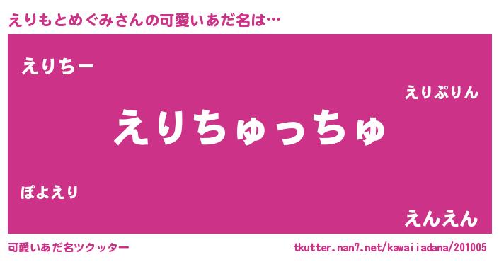 | ヘコむあだ名 | 『なまこ酢』『えりふぇ~』『えりを』 |