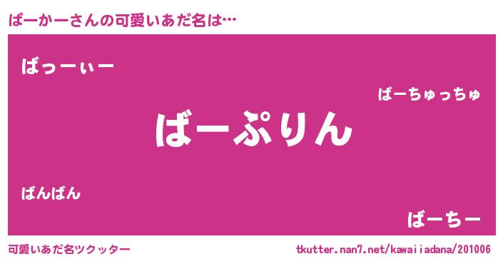 | 2回繰り返すあだ名 | 『わーわー』『いらいら』『ばばーー』 |