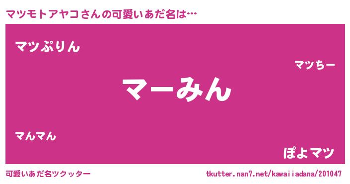 | 男性向けラノベタイトル風あだ名 | 『緋弾のマツモトアヤコ』 |