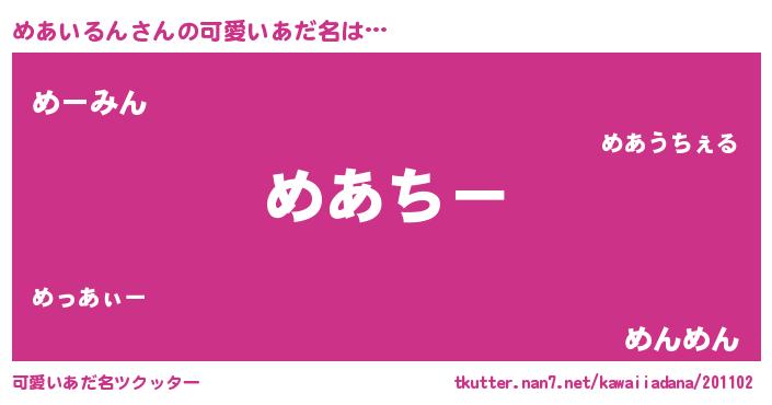 | 意味不明あだ名 | 『めあいるんフォーエバー』 |