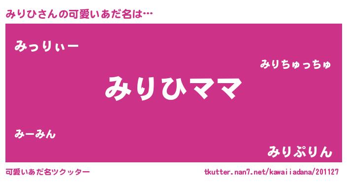 | ヘコむあだ名 | 『みりひ(苦笑)』『みり太郎』『豆乳』 |
