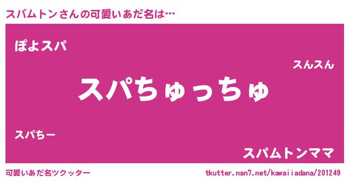 | 女子向けラノベタイトル風あだ名 | 『スパムトン恋絵巻』 |