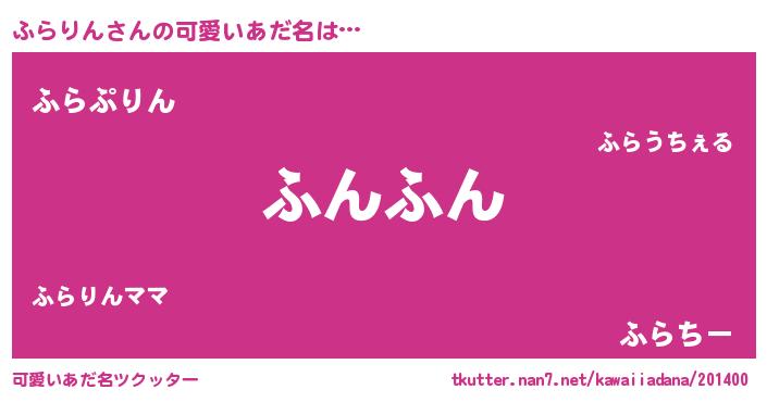 | 恥ずかしいあだ名 | 『プリティーふらりん』『ふらっちょ』 |