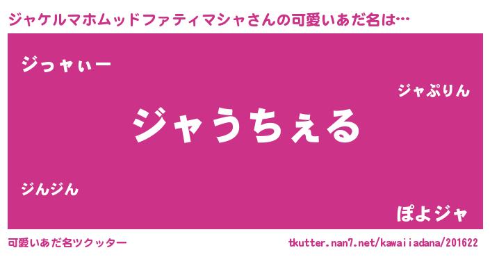 | 女子向けラノベタイトル風あだ名 | 『ジャケルマホムッドファティマシャなんてお断りですっ。』 |