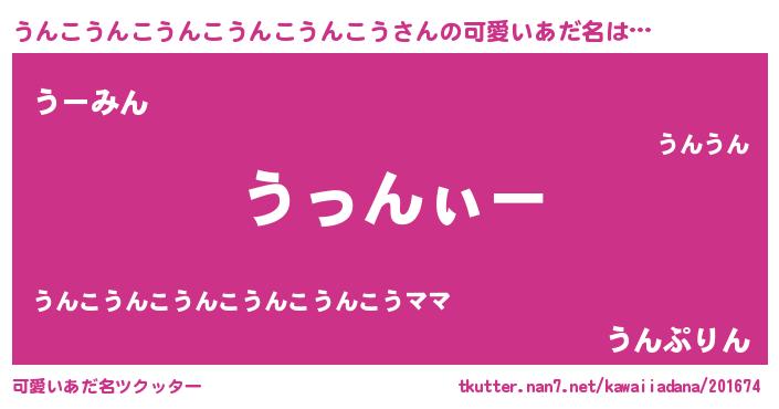 | 男性向けラノベタイトル風あだ名 | 『うんこうんこうんこうんこうんこうに滅ぼされるだけの簡単なお仕事です』 |
