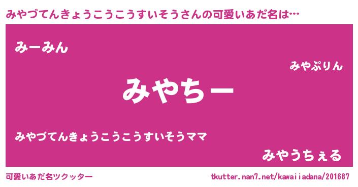 | 男性向けラノベタイトル風あだ名 | 『みやづてんきょうこうこうすいそうに滅ぼされるだけの簡単なお仕事です』 |