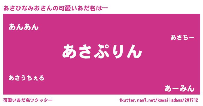 | 恥ずかしいあだ名 | 『プリティーあさひなみお』『あさっちょ』 |