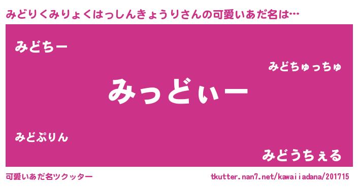 | ヘコむあだ名 | 『みどお』『なまこ酢』『みどふぇ~』 |