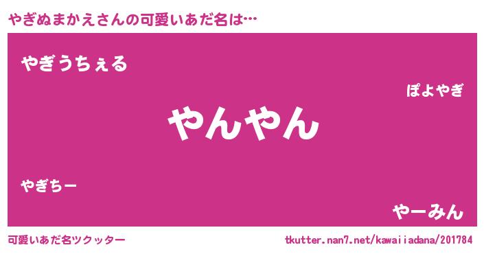 | ヘコむあだ名 | 『やぎにー』『レバニラ』『やぎを』 |