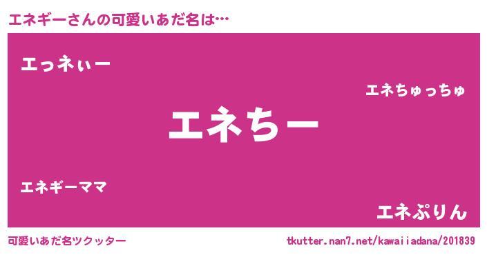 | ヘコむあだ名 | 『豆乳』『エネぷりん』『エネにゅー』 |