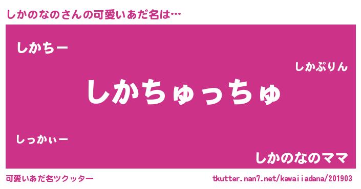 | ヘコむあだ名 | 『豆乳』『しかのなの(笑)』『しかお』 |