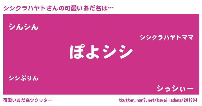 | 意味不明あだ名 | 『住所不定無職シシクラハヤト(5歳)』 |