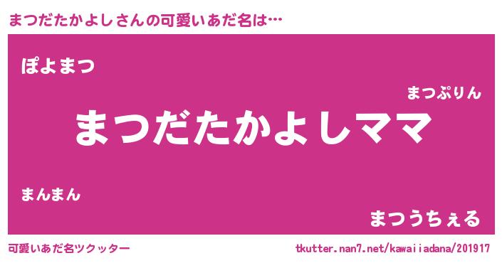 | 胡散臭い通販商品みたいなあだ名 | 『来世でも幸せになれる水素水…その名も「まつだたかよし」』 |