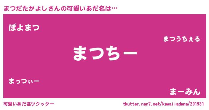 | 男性向けラノベタイトル風あだ名 | 『やはりまつだたかよしの青春ラブコメはまちがっている 』 |