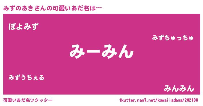 | 恥ずかしいあだ名 | 『プリティーみずのあき』『みずっちょ』 |