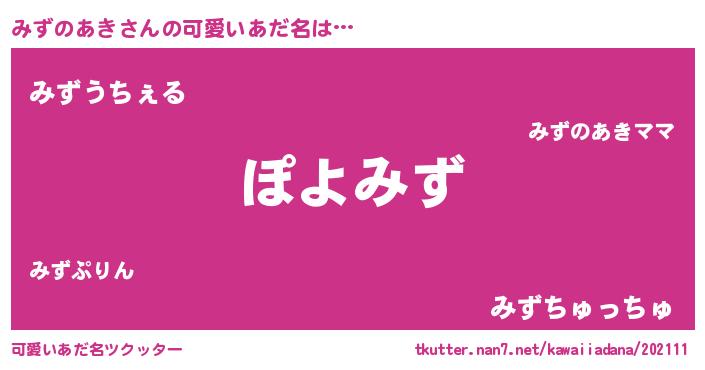 | ヘコむあだ名 | 『みずのあき(笑)』『みずを』『豆乳』 |