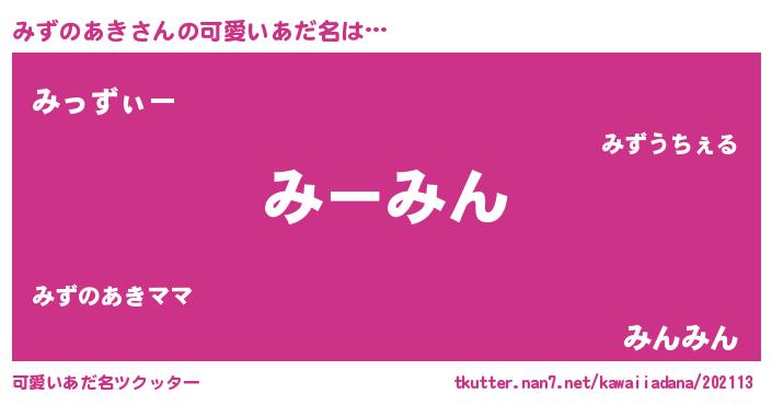 | 恥ずかしいあだ名 | 『ミズリンリン』『プリティーみずのあき』 |
