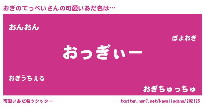| 女子向けラノベタイトル風あだ名 | 『おぎのてっぺいの卵を拾いまして』 |