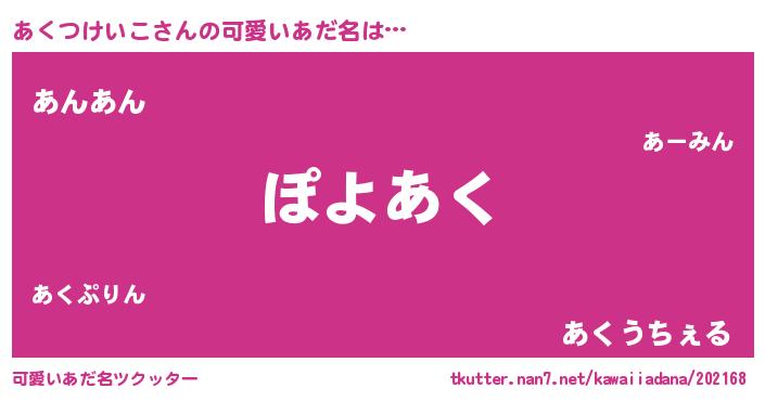 | 恥ずかしいあだ名 | 『プリティーあくつけいこ』『あくっちょ』 |
