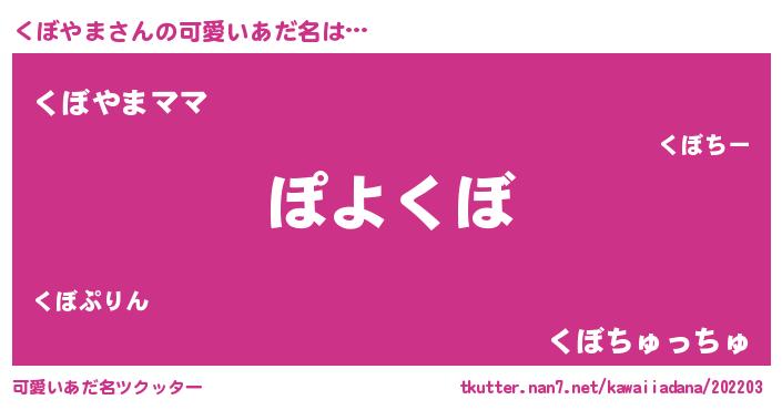 | ヘコむあだ名 | 『くぼやま(苦笑)』『豆乳』 |