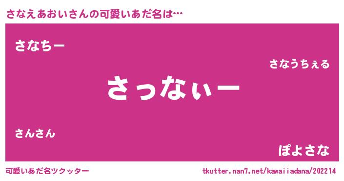 | 欧米人風あだ名 | 『ウサインさなえあおい』 |