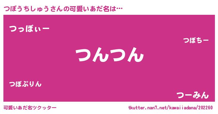 | 男性向けラノベタイトル風あだ名 | 『つぼうちしゅうの憂鬱』 |