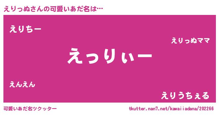 | 胡散臭い通販商品みたいなあだ名 | 『信頼と実績のサプリメント…その名も「えりっぬ」』 |
