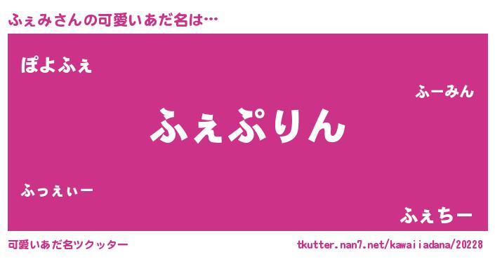 | 意味不明あだ名 | 『めかぶ科ふぇみ属』『永久保存ふぇみ』 |