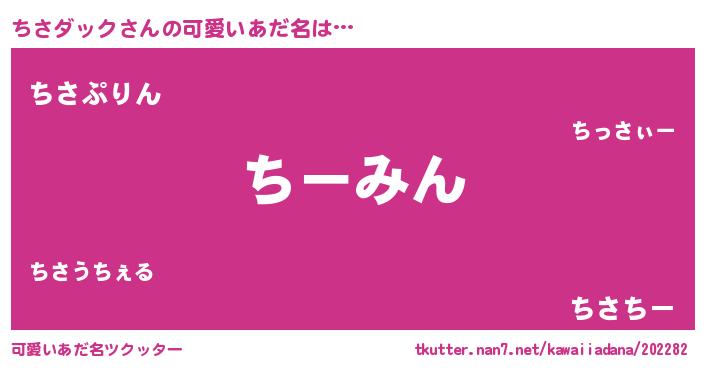 | 男性向けラノベタイトル風あだ名 | 『うちのちさダックが世界を掌握している!』 |