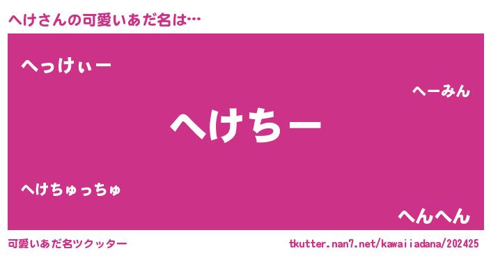 | 2回繰り返すあだ名 | 『へへけけ』『ぬれぬれ』『へけへけ』 |