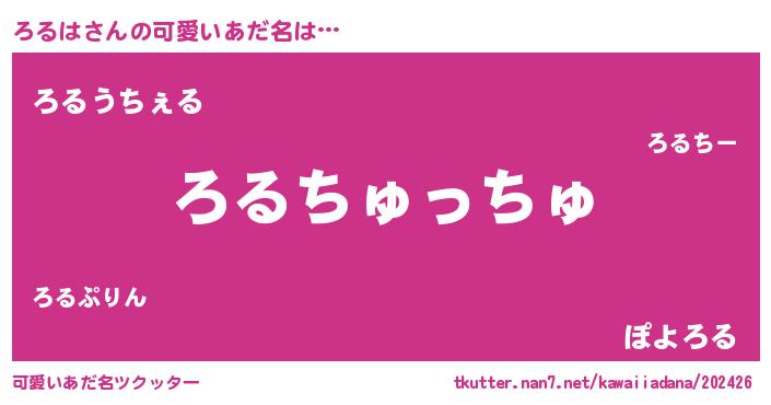 | 意味不明あだ名 | 『眠気覚ましガムろるは味』『自称ろるは』 |