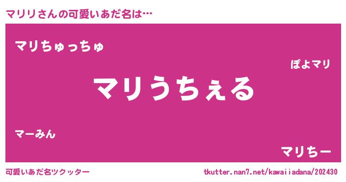 | ヒーロー風カッコイイあだ名 | 『最強戦士マリリ』『天空の使者マリリ』 |