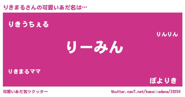 | ヘコむあだ名 | 『りきもー』『りきまる(震え声)』 |