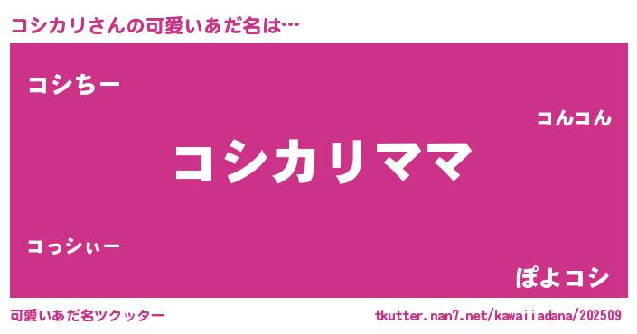 | 意味不明あだ名 | 『永久保存コシカリ』『ペロリンコシカリ』 |