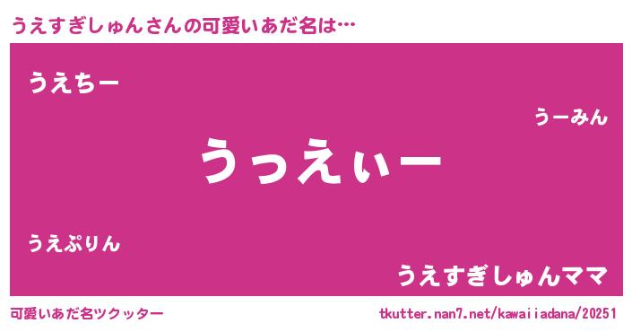 | 意味不明あだ名 | 『とにかく怪しいうえすぎしゅん』 |