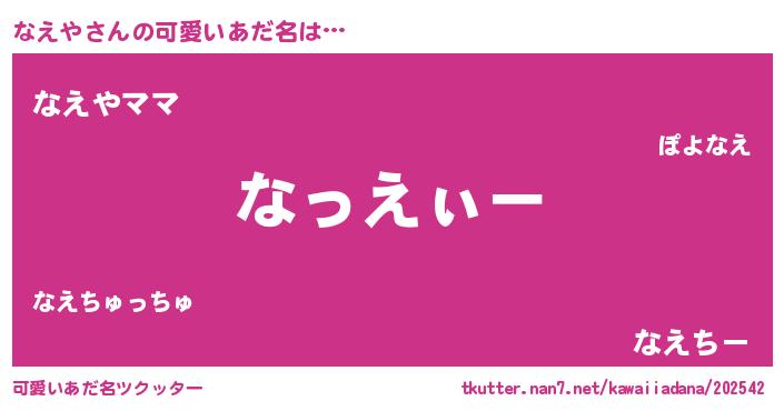 | ポケモン風あだ名 | 『ヒナエヤ』『ゼニナエ』『ナーエイ』 |
