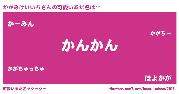 | 恥ずかしいあだ名 | 『プリティーかがみけいいち』『かがちん』 |