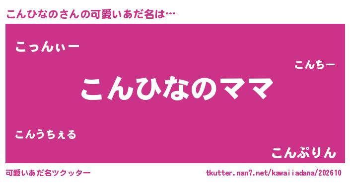 | 女子向けラノベタイトル風あだ名 | 『異世界で失敗しない100のこんひなの』 |