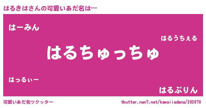 | 男性向けラノベタイトル風あだ名 | 『ノーゲーム・ノーハルキハ』 |