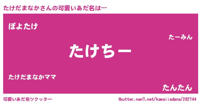 | 恥ずかしいあだ名 | 『たけっちょ』『プリティーたけだまなか』 |