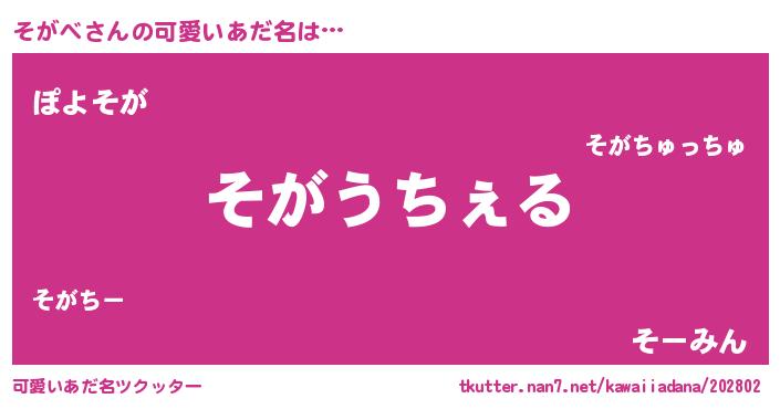 | 男性向けラノベタイトル風あだ名 | 『Re:そがべから始める異世界生活』 |