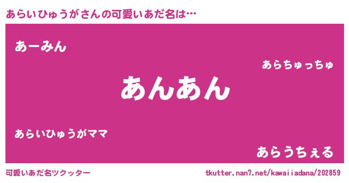 | ヘコむあだ名 | 『あらもー』『あらいひゅうが(笑)』 |