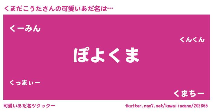 | 恥ずかしいあだ名 | 『くまっちょ』『プリティーくまだこうた』 |