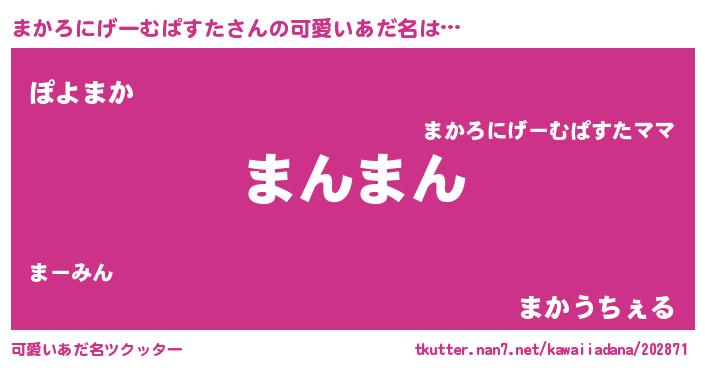 | 欧米人風あだ名 | 『マイケルまかろにげーむぱすた』 |