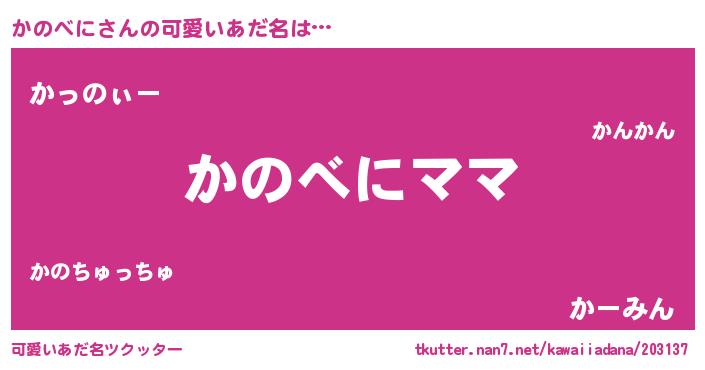 | 意味不明あだ名 | 『永久保存かのべに』『ペロリンかのべに』 |
